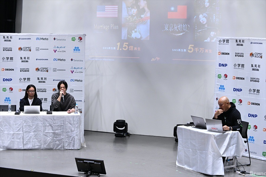 登壇者は、ショートドラマ配信アプリ「BUMP」を運営し、世界100カ国への展開を進めるemole株式会社CEOの澤村直道氏と、DMM.comでBL(ボーイズラブ)作品の日台共同制作を手掛けた石黒健太氏。モデレーターはCulture Weaver合同会社の平柳竜樹氏が務めた。