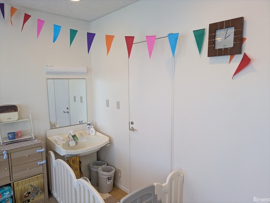また、部屋の一角はカーテンで仕切れるようになっており、子供たちが落ち着いて昼寝や休息を取れるよう配慮されている。子供用トイレやオムツ替えスペースはもちろん、調乳や手洗いのための設備も整っており、衛生面での管理も行き届いている。施設内のアイテムは、使い終わったら一回ごとに消毒して清潔さを保っているそうだ。