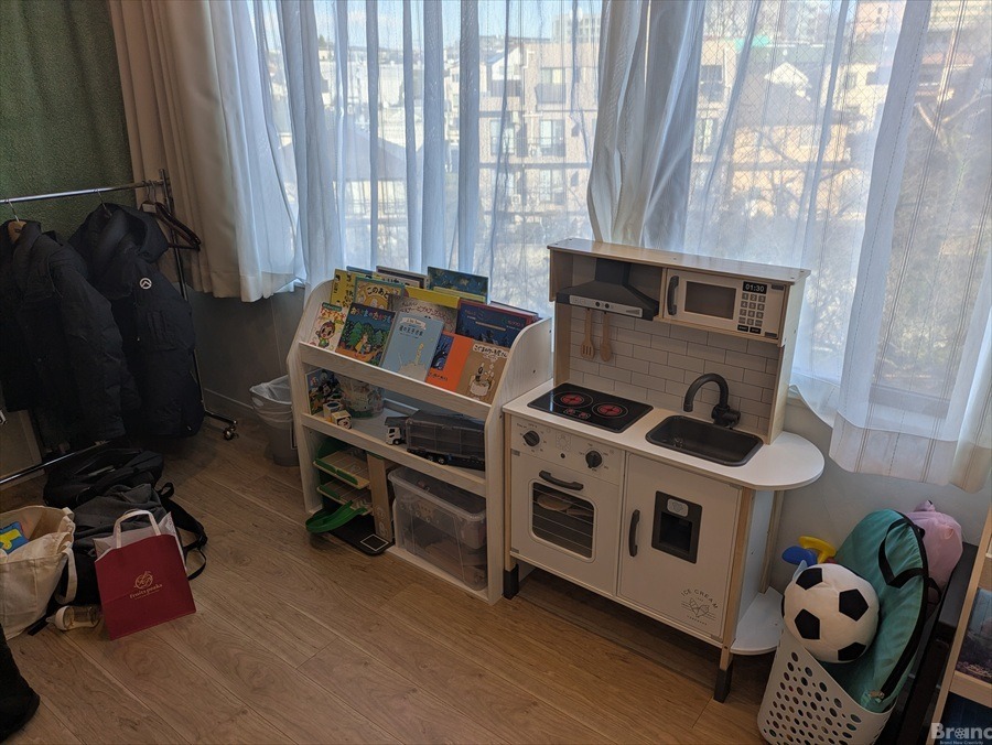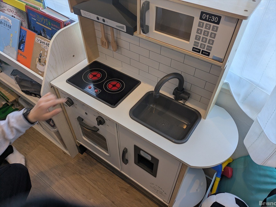 室内には充実したプレイエリアが設けられており、本格的なままごとキッチンや、絵本も充実している。子供たちが退屈せずに過ごせる工夫が随所に感じられた。