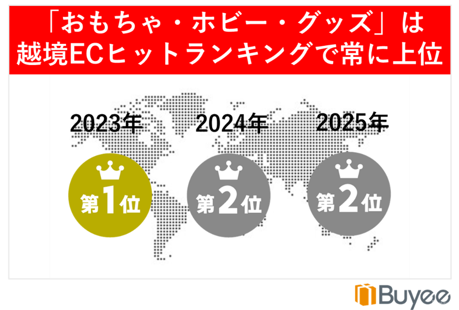 Buyeeにおいて「おもちゃ・ホビー・グッズ」は、近年人気上位を誇るカテゴリであり、2025年の伸長率ランキングで1位を獲得するなど、高い成長性を示している分野だ。