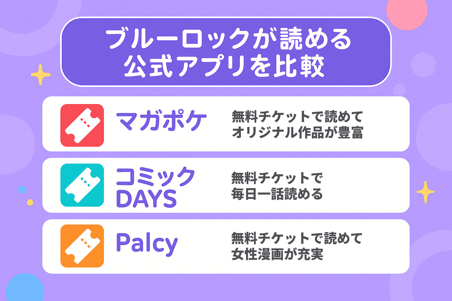 ブルーロックが読める公式アプリの比較表