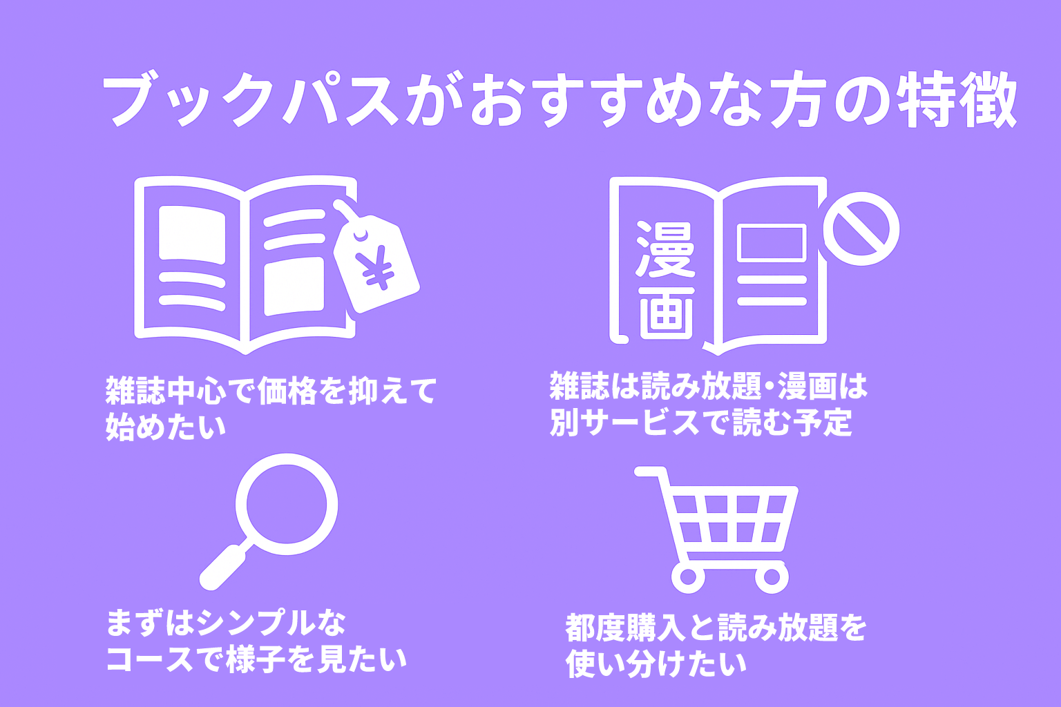 以下の特徴に当てはまる方は、ブックパスの利用を検討してみてください。