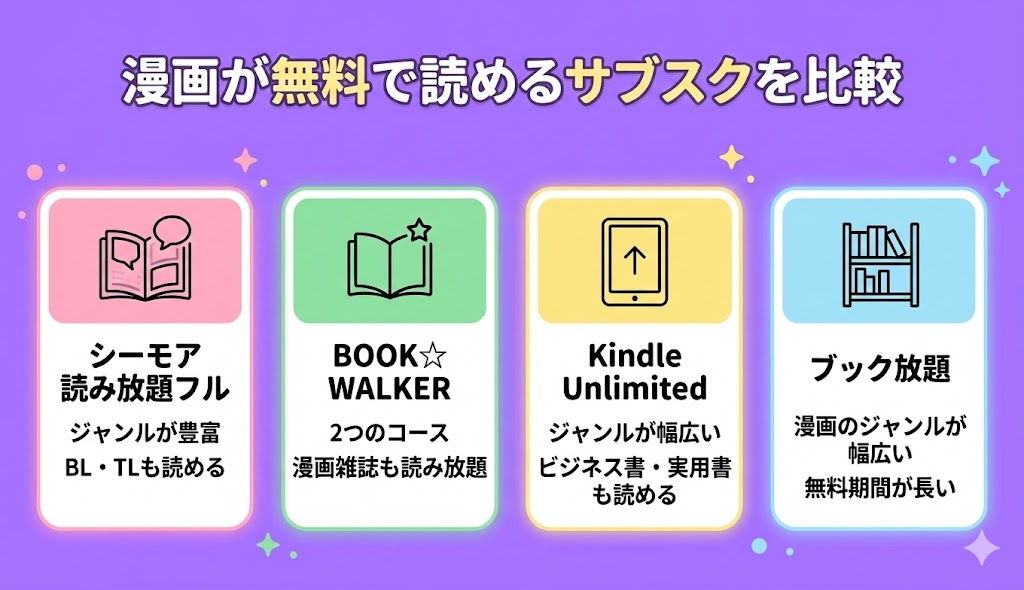 無料で漫画を読むなら、目的に応じた電子書籍ストアを利用するのがおすすめです。