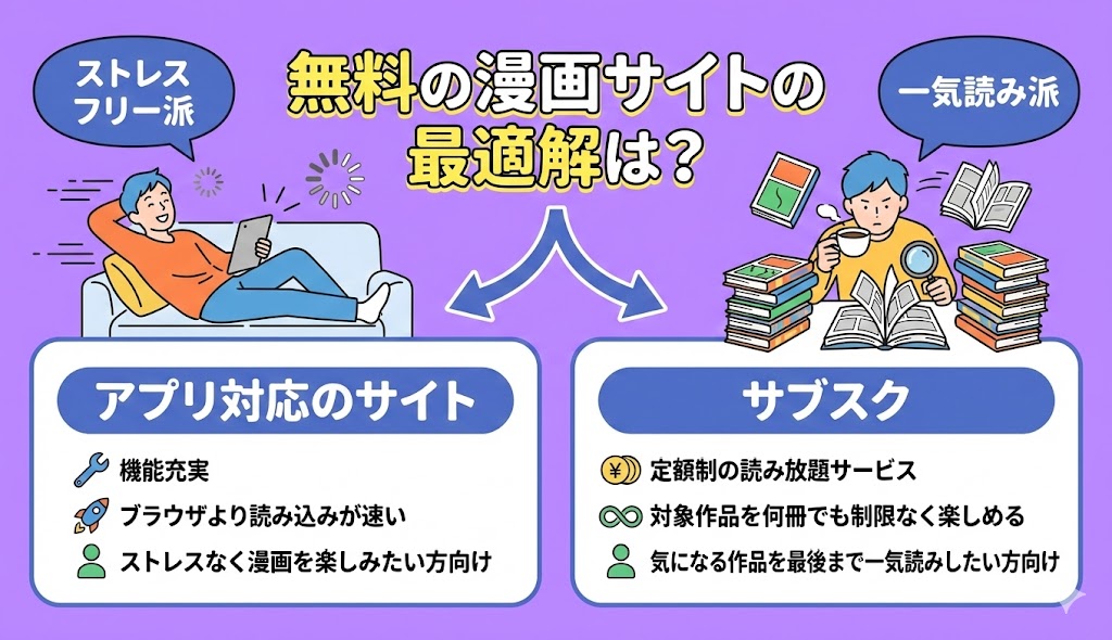 【結論】無料の漫画サイトは目的に応じて最適解が変わる