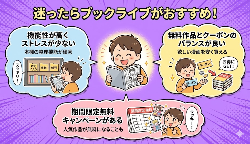 ここでは、なぜ数あるサイトの中でブックライブが最も選ばれているのか、その理由を深掘りします。