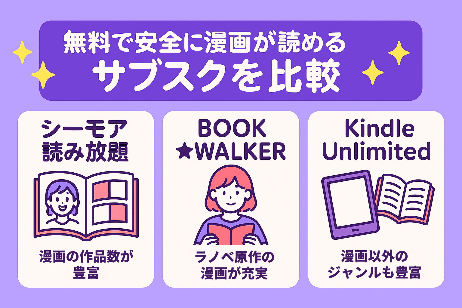 安全に無料で楽しみたい場合は、必ず正規のサービスを選んでください。具体的には、サブスクの無料期間や電子書籍ストアの無料試し読みなどが挙げられます。これらはすべて合法で、ウイルス感染の心配なく漫画を楽しめます。