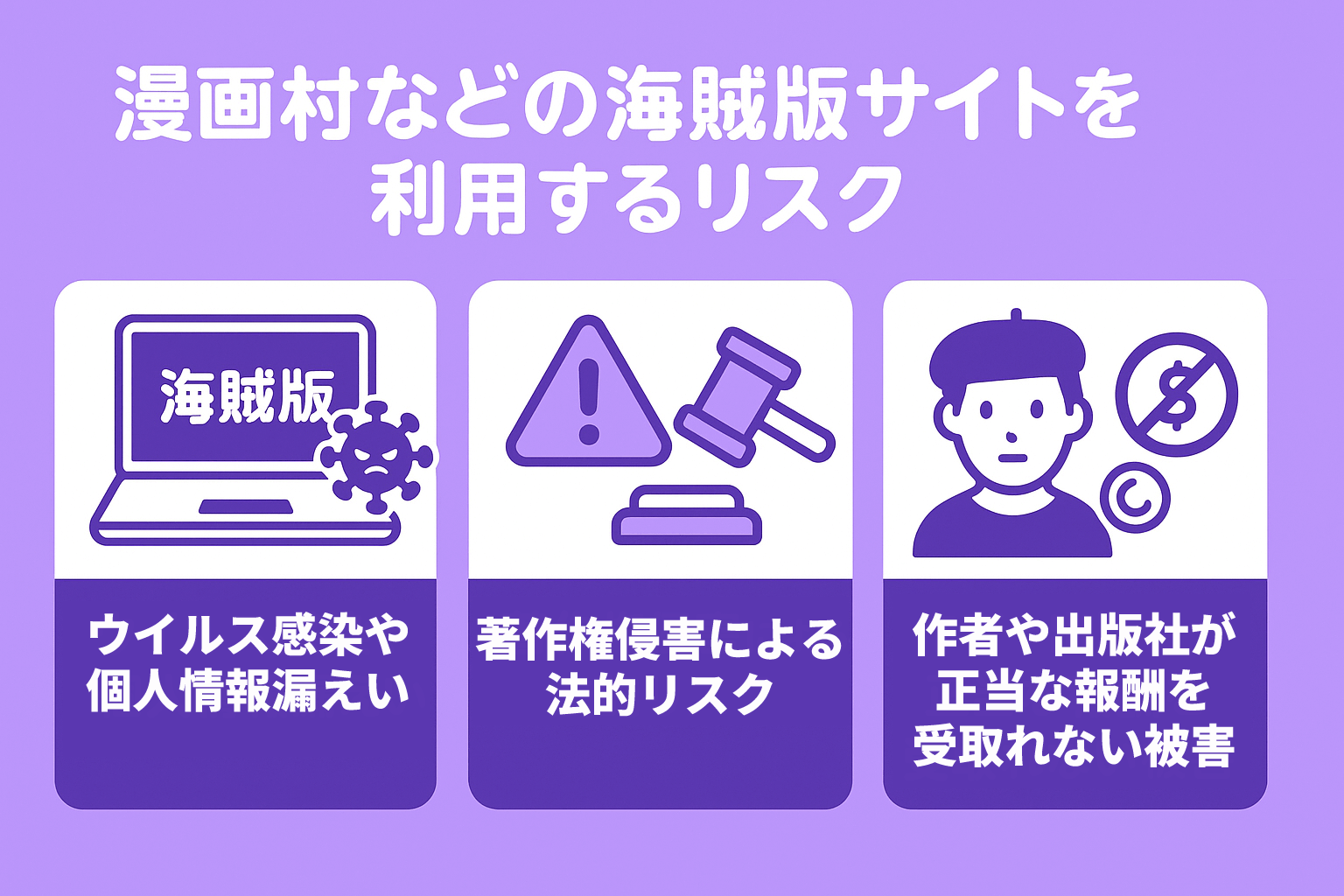 違法サイトの利用は作者に被害を与えるだけでなく、あなた自身にも法的な問題やセキュリティ上の危険が迫る行為です。