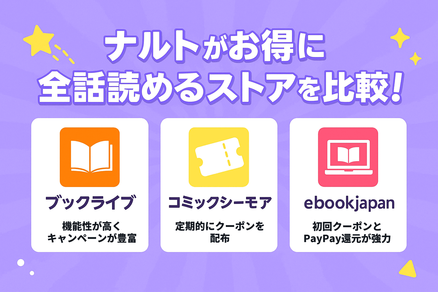 ここでは、特にナルトをお得に読める、おすすめのストアを紹介します。