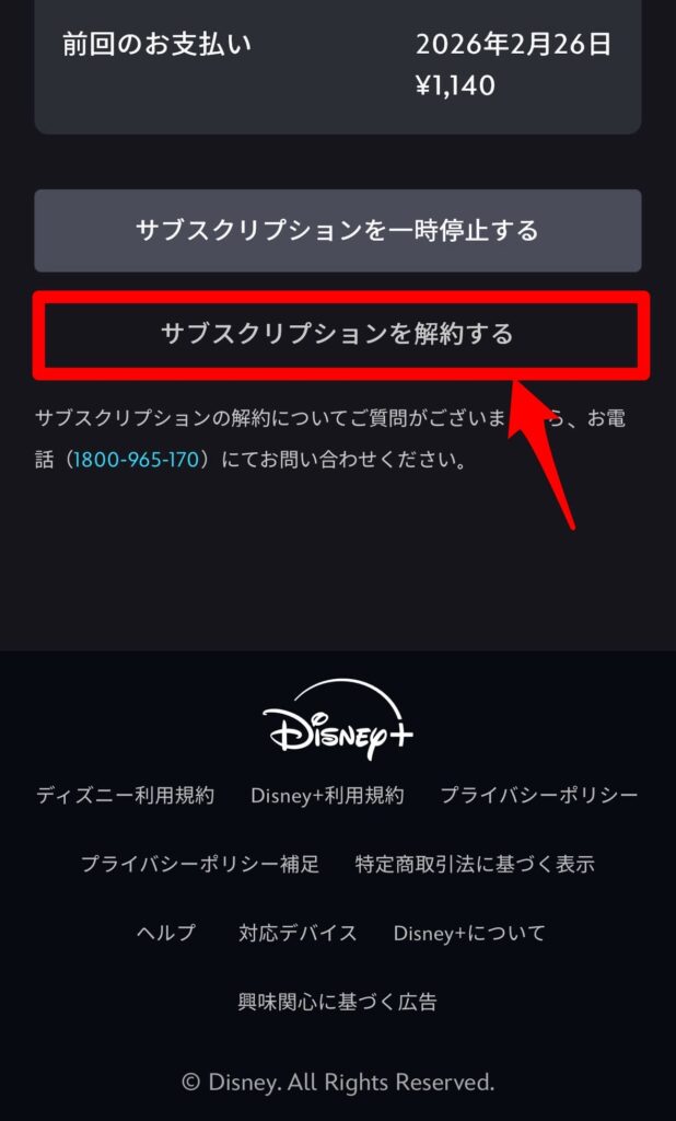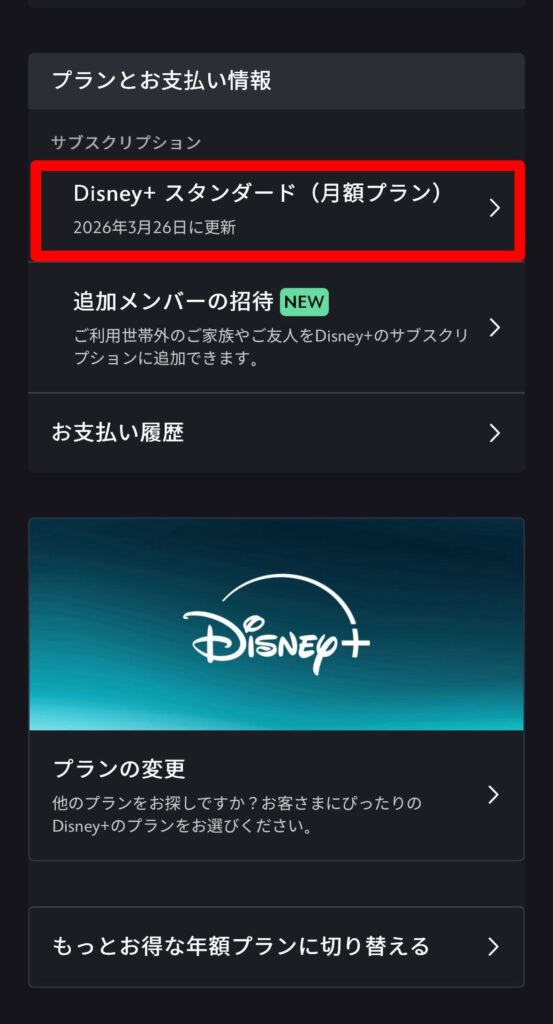 更新日前に解約手続きを行えば、1ヶ月だけディズニープラスを利用できます。