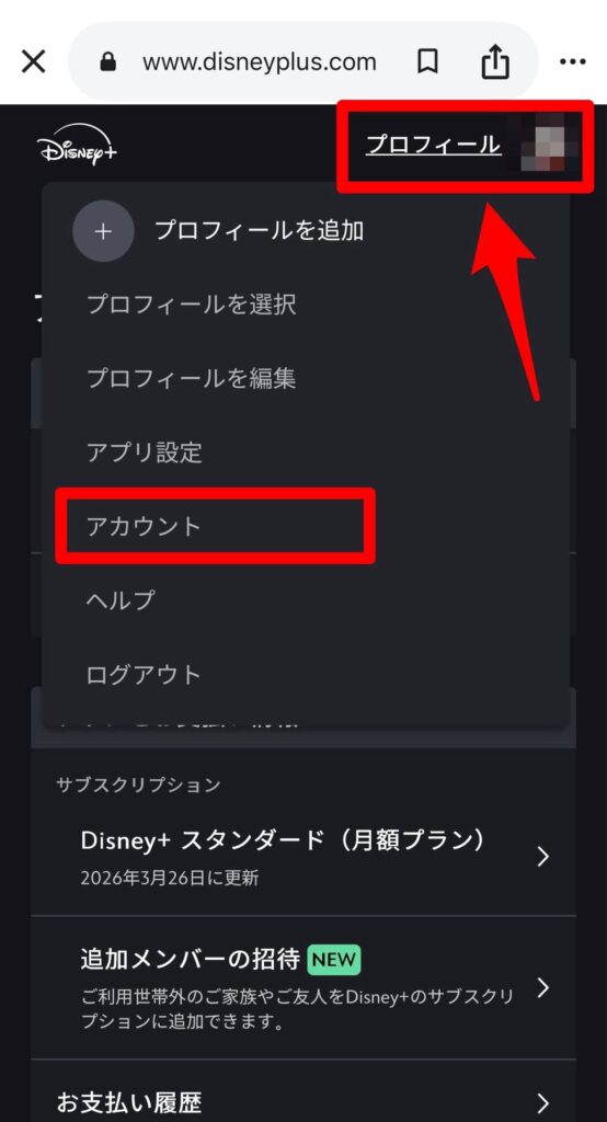 ディズニープラスの解約手続きの流れは以下の通りです。