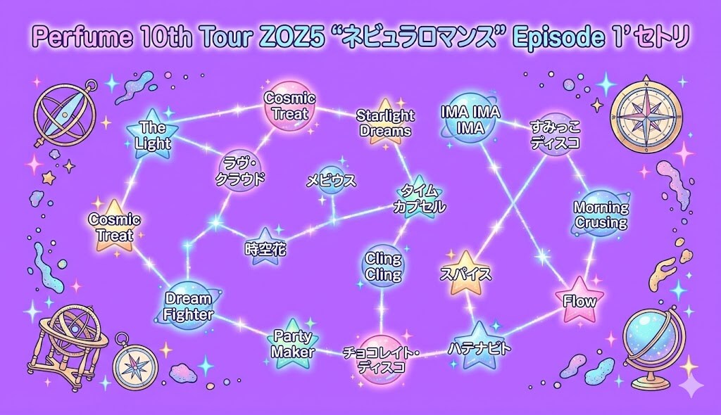 【ネタバレ注意】『Perfume 10th Tour ZOZ5 “ネビュラロマンス” Episode 1』のセトリを紹介